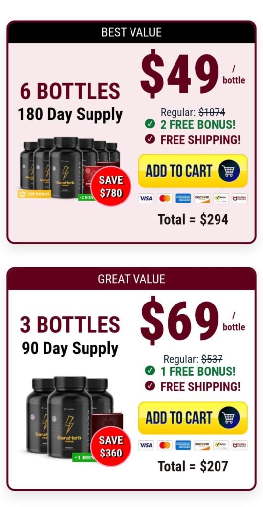 If you’re committed to supporting peak male performance, boosting energy, and improving long-term stamina, be sure to order Garaherb only through the Official Website.